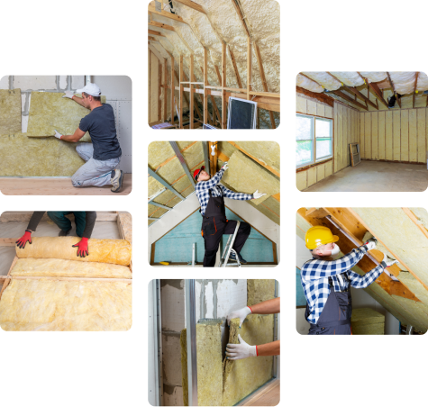 Consiste en la instalacion de materiales como corcho, lana de roca o tejados panel sandwich en tejados, muros y suelos, para mantener la temperatura interior, mejorar el rendimiento termico y reducir el ruido acustico, a la vez que se apoya la impermeabilizacion y se previenen humedades, goteras y gotera.